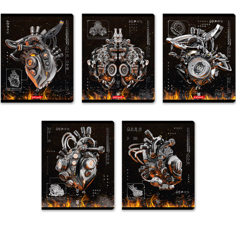 "Светоч" 96ТЕТк-007 Тетрадь ученическая общая, матовая ламинация + тиснение серебряной фольгой, A5 96 л. на скобе 60 г/кв.м , белизна 100 % 5 шт. клетка 000779 Железное сердце