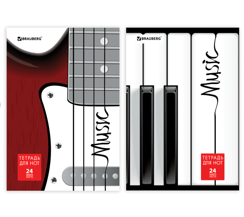 Тетрадь для нот А4, 24 л., BRAUBERG, обложка мелованный картон, вертикальная, "Музыка", 2 вида, 1254