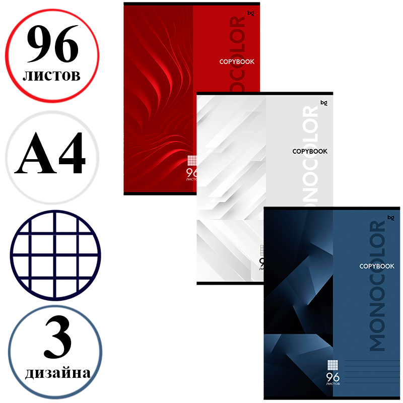 Тетрадь общая BG "Monocolor. Classic", А4, 96 листов в клетку, на скрепке