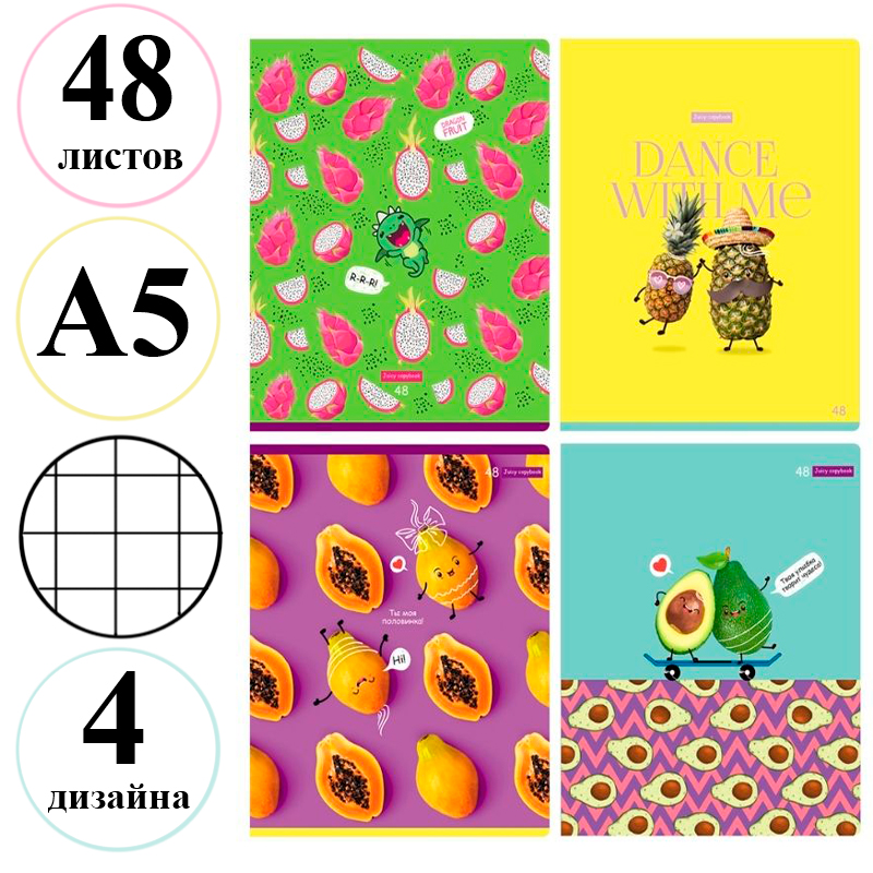 Тетрадь общая BG "Сочная тетрадь", А5, 48 листов в клетку, на скрепке