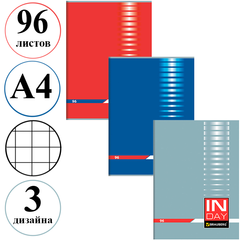 Тетрадь общая BRAUBERG "Inday", А4, 96 листов в клетку, на скрепке