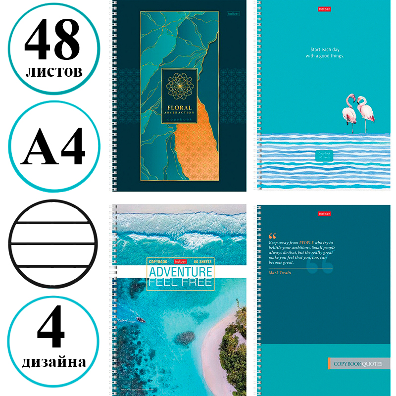 Тетрадь общая Hatber, А4, 80 листов в линейку, картон, на спирали, ассорти
