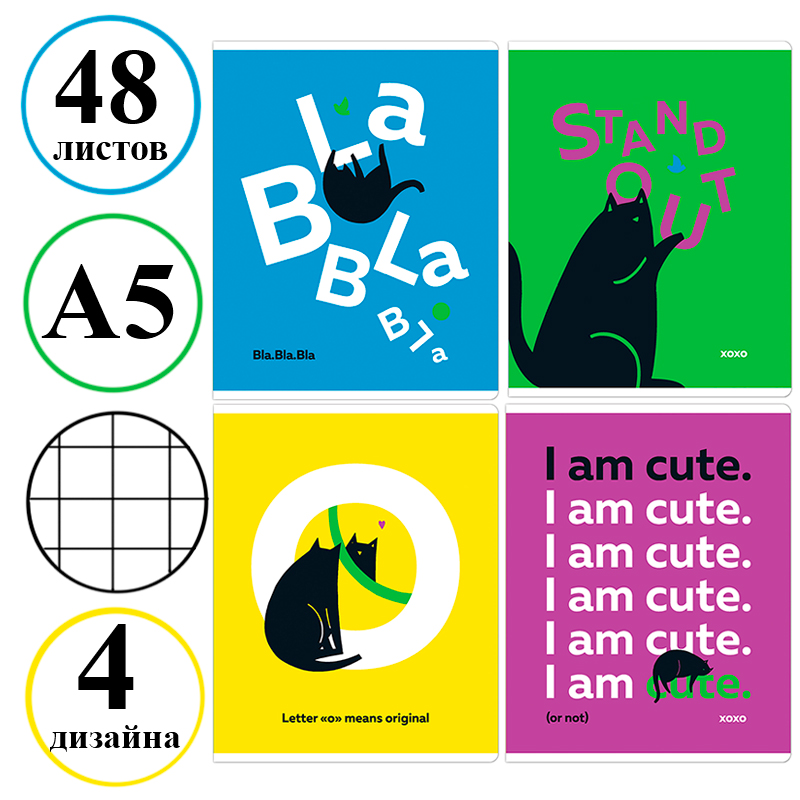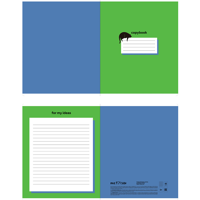Тетрадь общая MESHU "Сhatty cat", А5, 48 листов в клетку, матовая ламинация, выб. лак, на скрепке