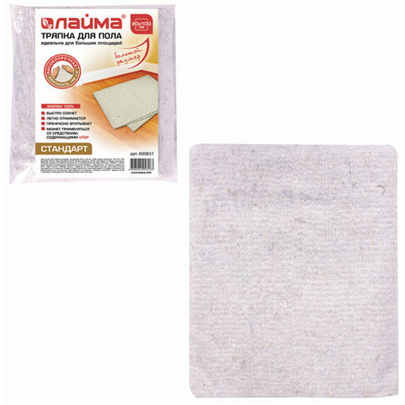 Тряпка для мытья пола ЛАЙМА, 80х100 см, хлопок, белая