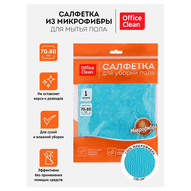 Тряпка-салфетка для пола OfficeClean "Премиум", 70х80 см, микрофибра, голубая