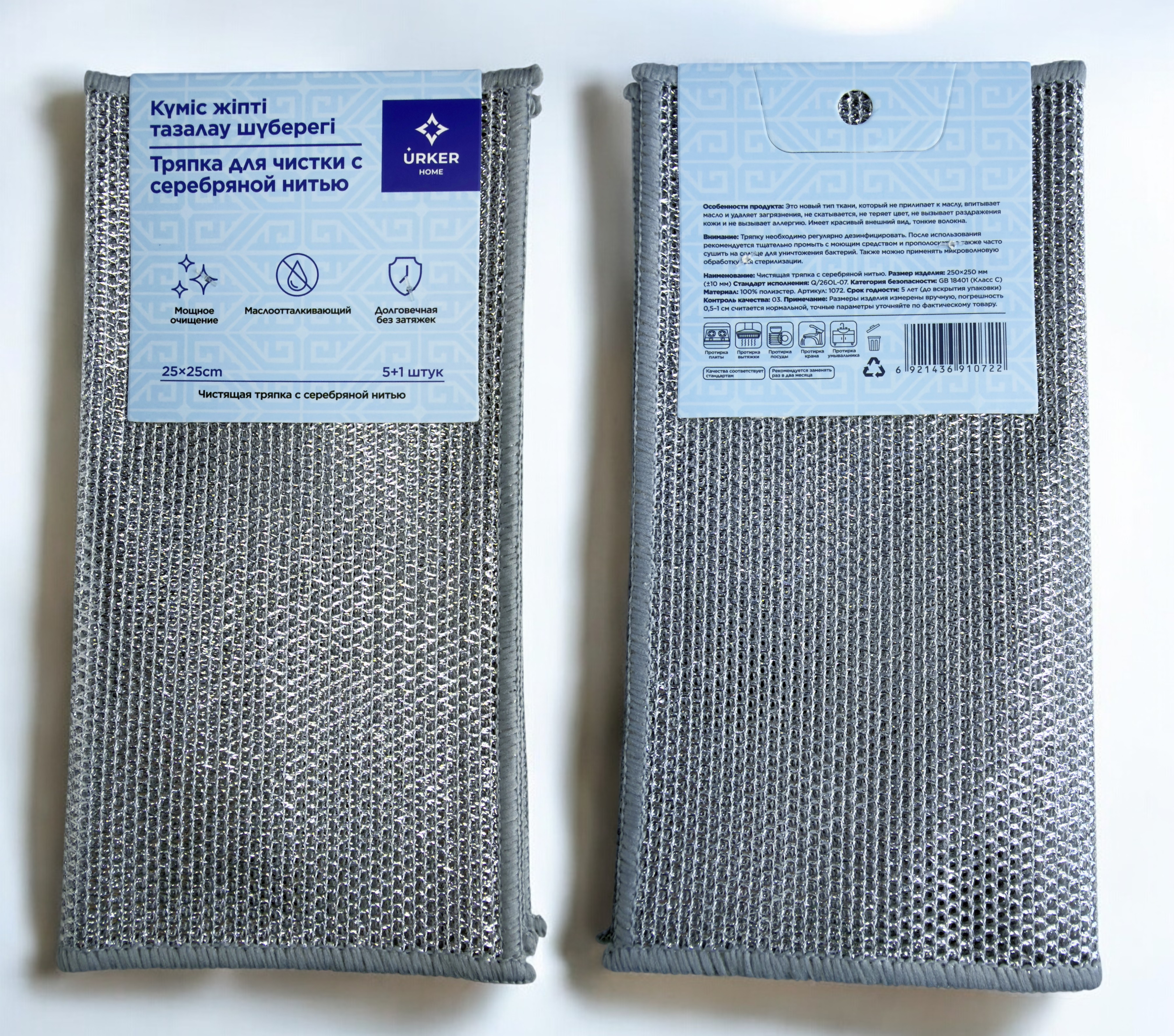 Универсальная чистящая тряпка Набор 5+1шт SilverGrid Urker Home 25х25 см