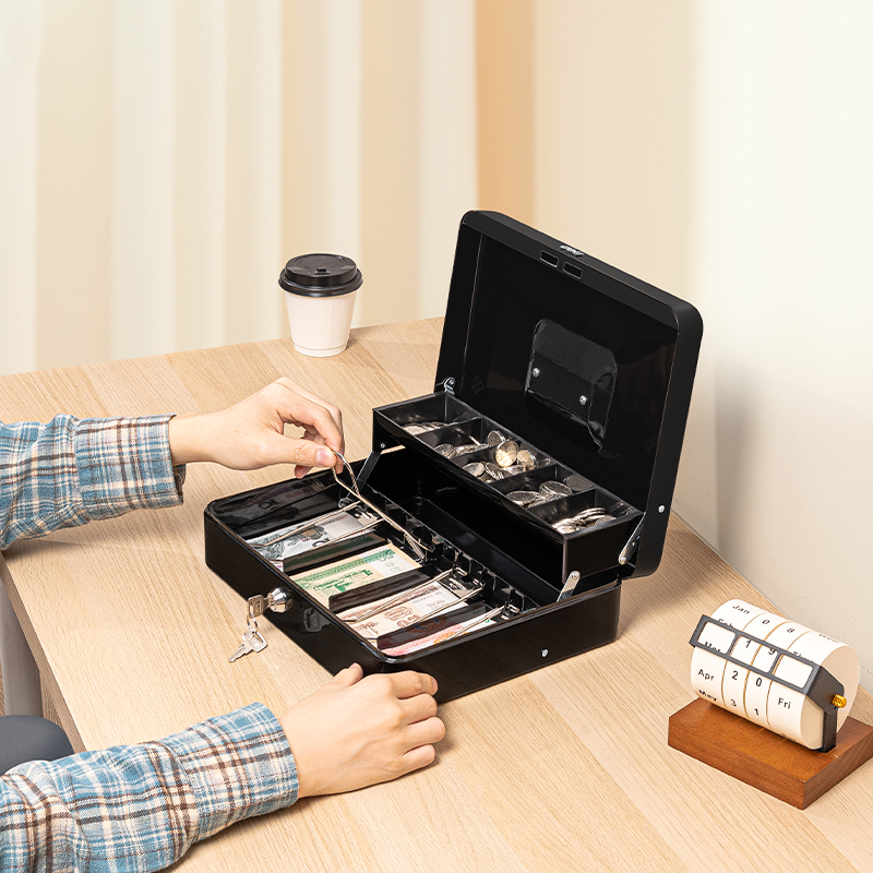 Ящик для денег DELI, 90х300х240 мм, 2 кг, сталь, черный