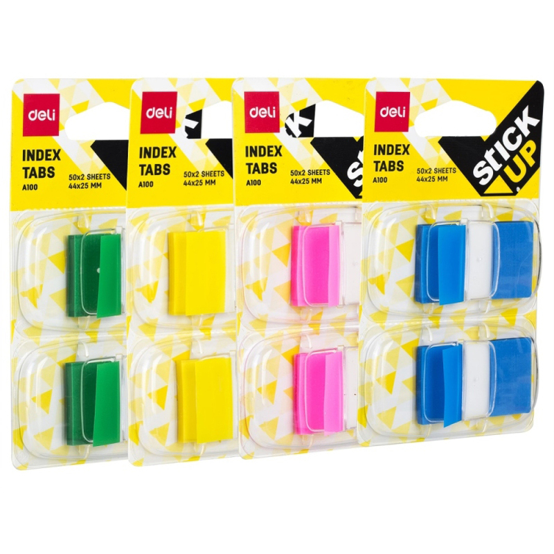 Закладки клейкие DELI 44 х 25 мм, пластиковые, ассорти, 100 листов