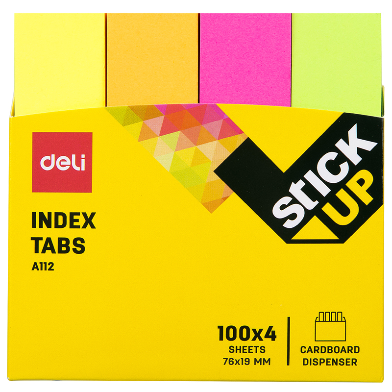 Закладки клейкие DELI 76 х 19 мм, бумажные, неон, 4 цв х 100 листов