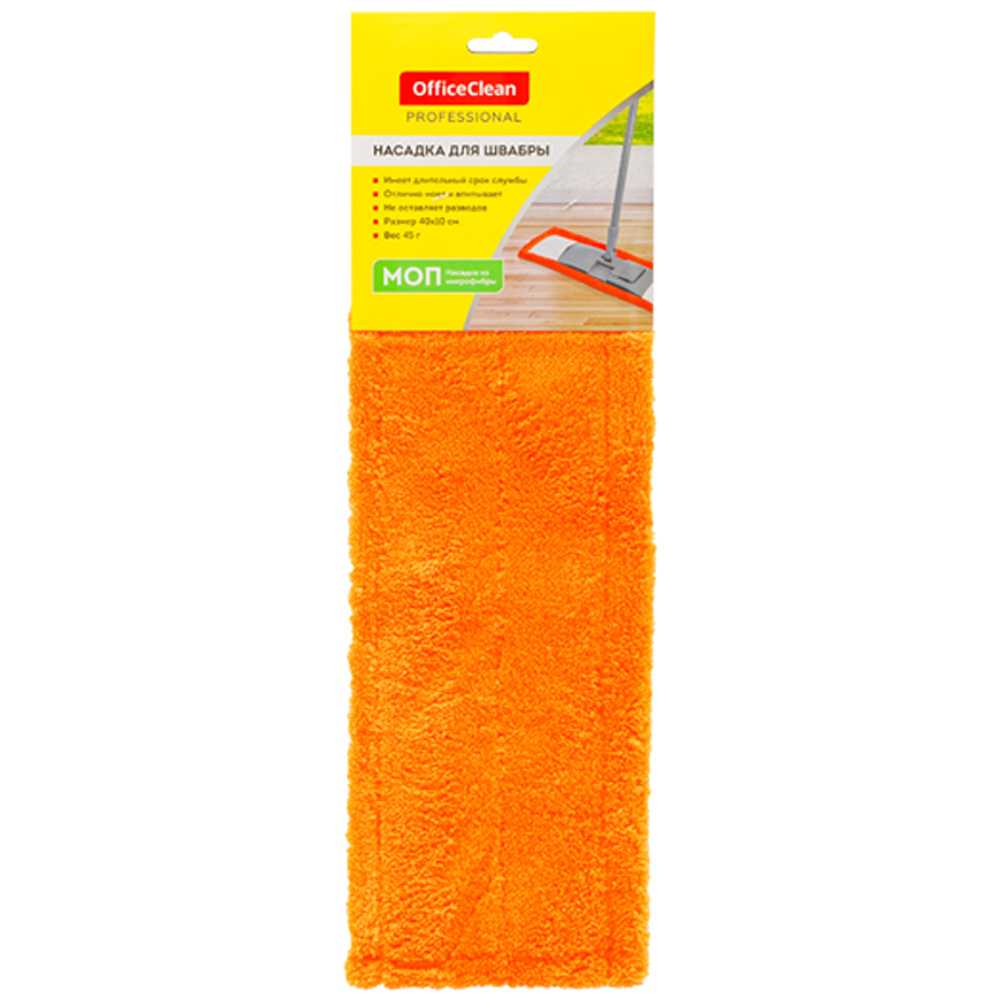 Запаска для швабры OfficeClean Professional, 40х10 см, микрофибра, ворс 0,5 см, карманы, оранжевая