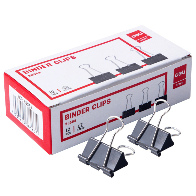 Зажимы для бумаг DELI, 32 мм, черные, (12 шт)