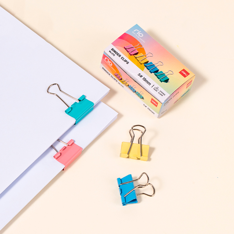 Зажимы для бумаг DELI "RIO", 19 мм, цветные, (12 шт.)