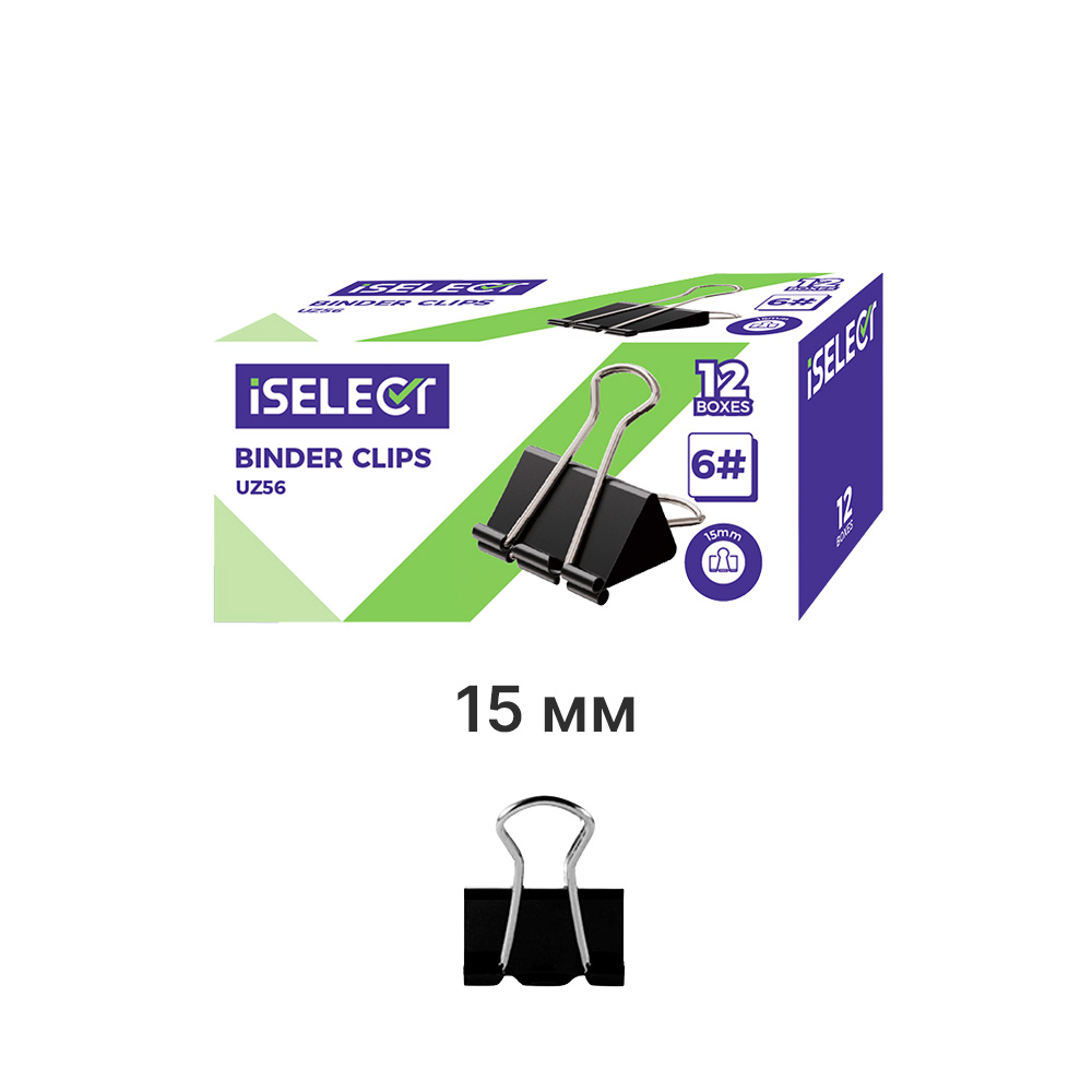 Зажимы для бумаг i Select "Z56", 15 мм, черные, (12 шт.)
