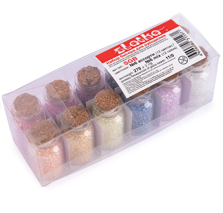 "Zlatka" набор бисера для рукоделия SGB №6 ассорти прозр. с цвет.отверстием